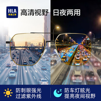 海澜之家(HLA)日夜两用偏光太阳镜 变色遮阳墨镜男 夜视眼镜开车专用礼物 银色