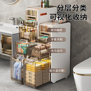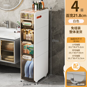 JEKO&JEKO卫生间置物架落地夹缝收纳柜浴室用品厕所马桶储物夹缝柜4层