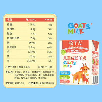 牧羊人儿童成长羊奶200ml*12礼盒装钙铁锌维生素D早餐奶三分甜口感