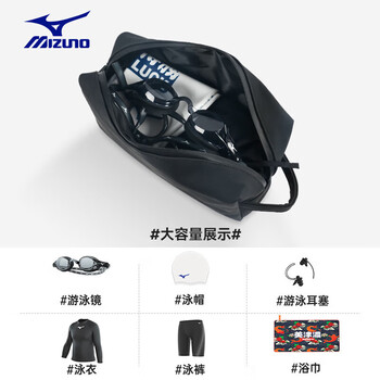 美津浓(MIZUNO)泳包男女干湿多功能防泼水加大运动健身手提便携游泳收纳包2007黑