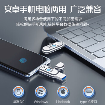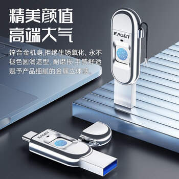 忆捷(EAGET)512GB Type-C USB3.0 FU68指纹加密手机U盘 双接口安卓电脑两用防泄密高速优盘商务
