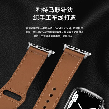MSSM适用苹果手表表带真皮apple watch Swift小牛皮表带iwatch S11/ultra3/S10/9/SE3-米白44/45/46/49