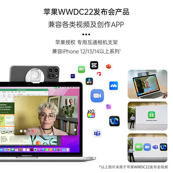 贝尔金(BELKIN)手机支架 MagSafe磁吸支架 iPhone指环扣 Macbook连续互通相机 视频直播手机架 MMA006黑