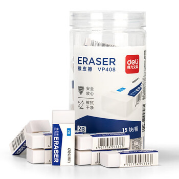 得力(deli) 15块装橡皮擦 中考高考美术绘图橡皮柔软易擦少屑学生开学文具 白色桶装