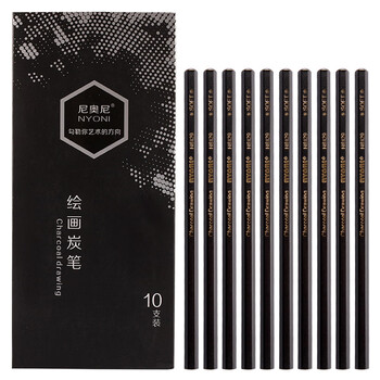 尼奥尼(NYONI)炭笔黑杆六角美术生专用素描铅笔初学者绘画速写学生联考艺考试专业工具-硬碳10支/盒N8129