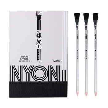 尼奥尼(NYONI)升级款高光橡皮笔 素描铅笔炭笔橡皮擦美术生绘画专用 少屑干净不粘手橡皮尾部带毛刷 12支装N2820