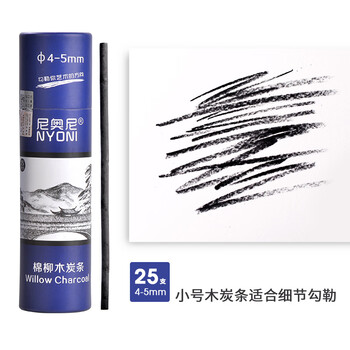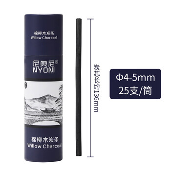 尼奥尼(NYONI)棉柳木碳条圆形4-5mm素描炭笔碳棒碳精条美术绘画写生速写学生起稿打型画画笔25支N8135