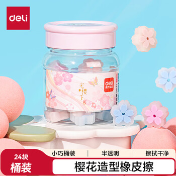 得力(deli)樱花橡皮擦 24块学生中考高考美术考试绘图橡皮擦樱花造型创意洁净 桶装