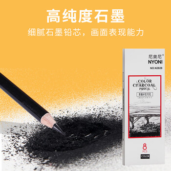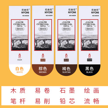 尼奥尼(NYONI)彩色炭笔深棕素描铅笔美术生专用初学者绘画速写学生联考艺考试专业工具8支装/盒N2828深棕