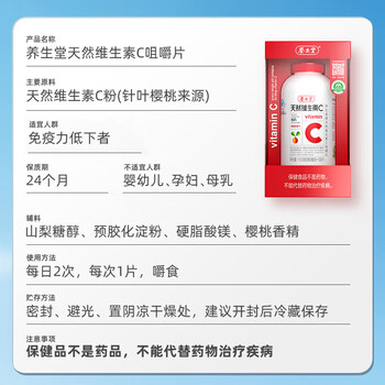 养生堂天然维生素C200片 补充vc针叶樱桃 增强免疫力全家常备蓝帽认证