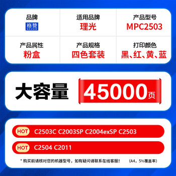 格赞适用理光mp c2011sp粉盒MPC2503C 2504 C2003SP C2004exSP C2503 C2011打印机墨粉硒鼓四色套装大容量