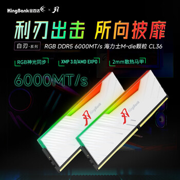 金百达(KINGBANK)64GB(32GBX2)套装 DDR5 6000 台式机内存条海力士M-die颗粒 白刃RGB灯条 C36 Deepseek硬件