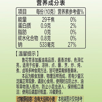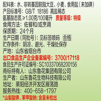 鲁花自然鲜零添加系列 生抽酱油【0添加防腐剂 特级生抽】500ml调味品
