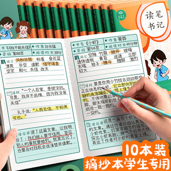 舒星A5读书笔记本好词好句摘记本72页小学生语文阅读摘抄本记录卡阅读笔记专用记录本一三四年级10本装