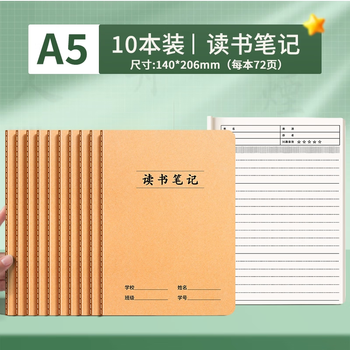 舒星a5读书笔记本阅读记录本86页好词好句摘抄卡小学生阅读笔记专用语文三四六年级初中读后感 10本装