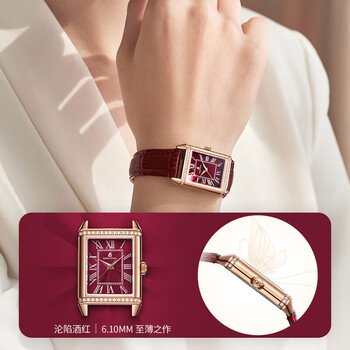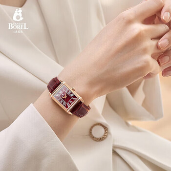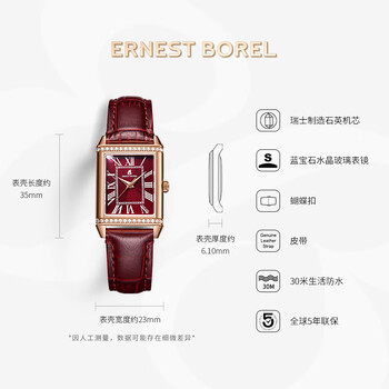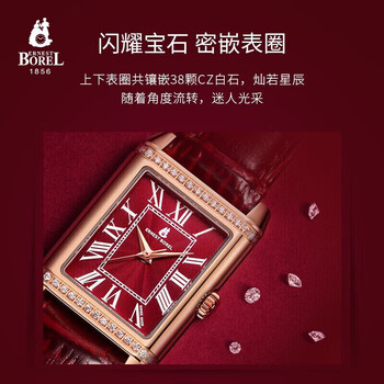 依波路(ERNEST BOREL)瑞士手表女 【新年礼物】 经典酒桶罗马时符红色皮带镶宝石英女表