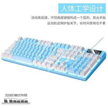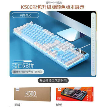 银雕(YINDIAO) K500键盘彩包升级版 机械手感 游戏背光电竞办公USB外接 全尺寸 蓝白双拼白光有线键盘