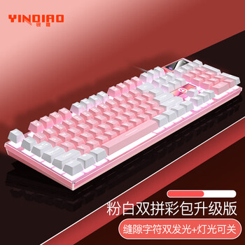 银雕(YINDIAO) K500键盘彩包升级版 机械手感 游戏背光电竞办公USB外接键盘 粉白双拼白光有线键盘