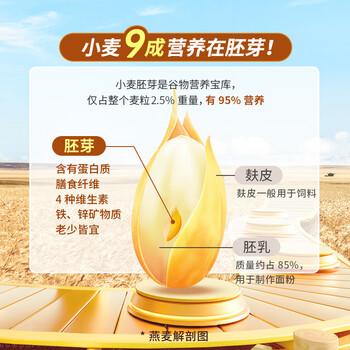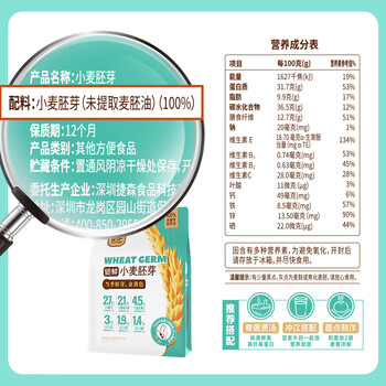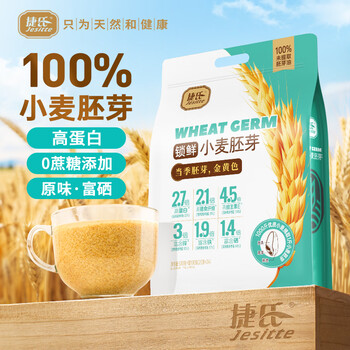 捷氏小麦胚芽纯麦片600g无蔗糖高纤富硒健身代餐高蛋白质营养冲饮早餐
