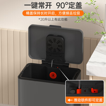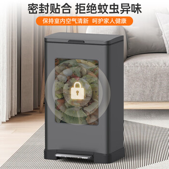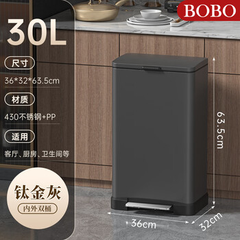 BOBO不锈钢厨房垃圾桶30L钛金灰脚踏式脚踩带盖客厅办公室家用8858