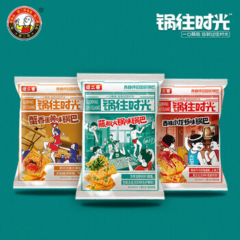 傻二哥锅往时光锅巴900克混合装1包 包含:(每一小包23克,约39小包,有香辣小龙虾味,藤椒火锅味、 蟹香蛋黄味3个口味混合)
