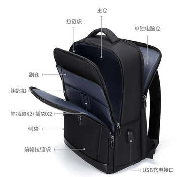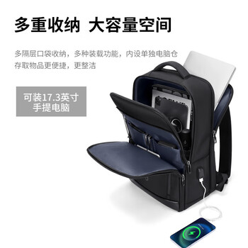 高尔夫(GOLF)双肩包男士多隔层背包男17.3英寸电脑学生书包商务旅行背包 黑色