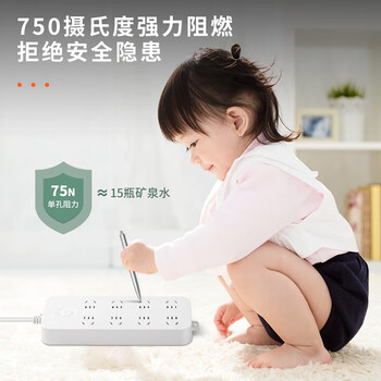 得力33916(03) 雅白系列新国标插座/插线板/插排/排插/接线板/拖线板延长线插座 8位插孔全长3米 1个装
