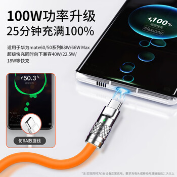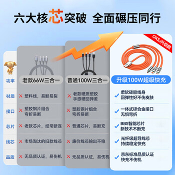 OKSJ【优质硅胶】数据线三合一充电线一拖三头6A快充100W车载 多功能安卓Type-C适配华为/苹果荣耀手机