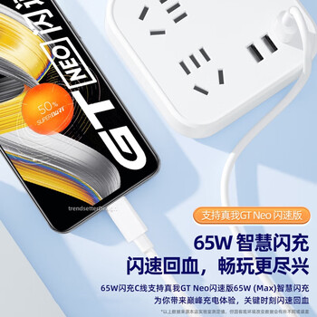 trendsetter适用于realme真我数据线65W闪充2米加长gt2pro/neo2t/q3s/q2/x50/70/v13/15/x2快充充电线