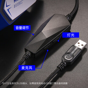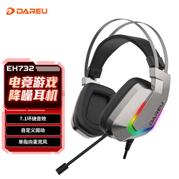 达尔优(dareu)EH732游戏电竞头戴式耳机电脑有线控耳麦单USB7.1声道明末渊虚之羽听声辩位 苍穹灰
