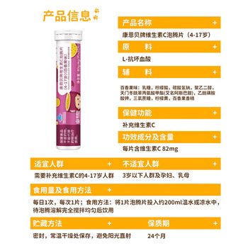 康恩贝 维生素C泡腾片4g/片*20片 儿童学生4-17岁 VC 补充维c 百香果味