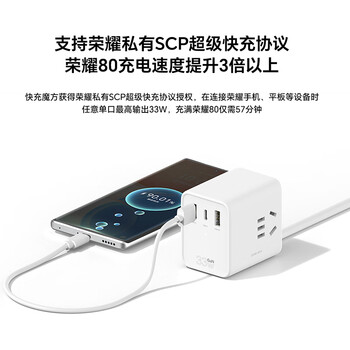 荣耀 乐坞快充插排 33W 白色 支持荣耀手机快充 氮化镓黑科技 多口合一
