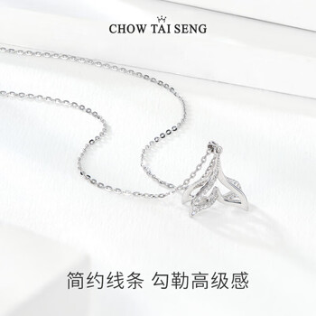 周大生(CHOW TAI SENG)【生日礼物】鱼尾纯银项链女轻奢锁骨链高级设计感