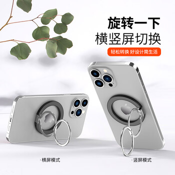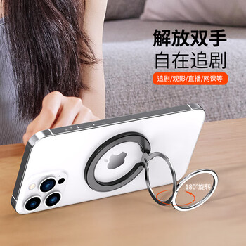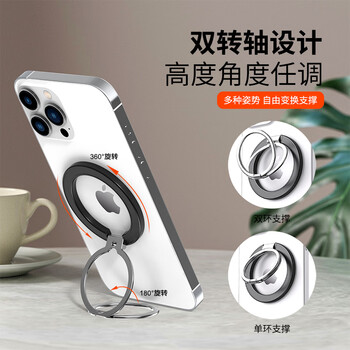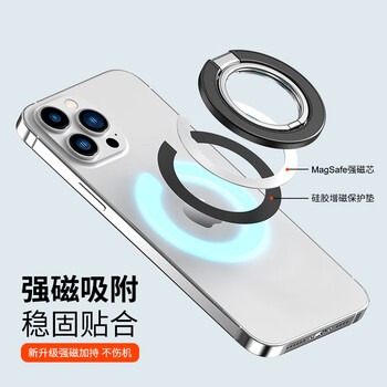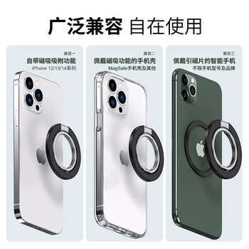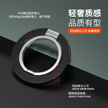 ESCASE 手机指环扣支架华为mate60磁吸支架苹果14pro手机ipad桌面支架magsafe金属合金自由旋转黑色DMF02