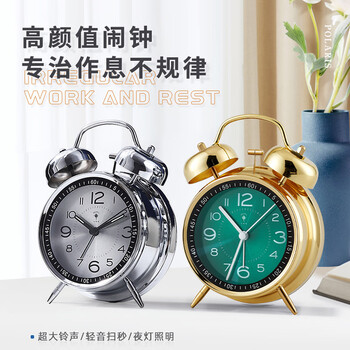 北极星(POLARIS)闹钟个性创意小时钟夜灯简约学生宿舍专用卧室床头闹铃 K6400绿色【开学季】