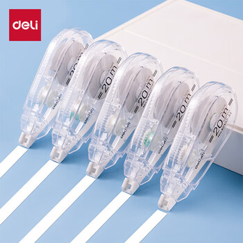 得力(deli)100米大容量修正带 顺滑不卡改正带 PET带芯不易断带涂改带 5只装修正带 简约款开学必备