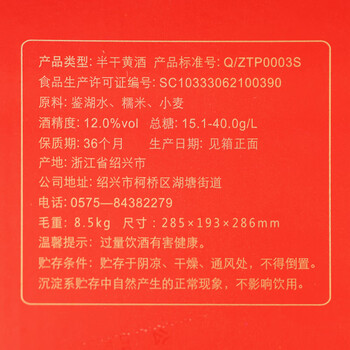 塔牌 黄九鲜 半干型 绍兴黄酒 500ml*8瓶 整箱装 无焦糖色