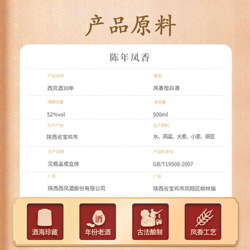 西凤酒 30年52度酒 500mL单瓶装 凤香型白酒 婚庆喜宴请自饮送礼