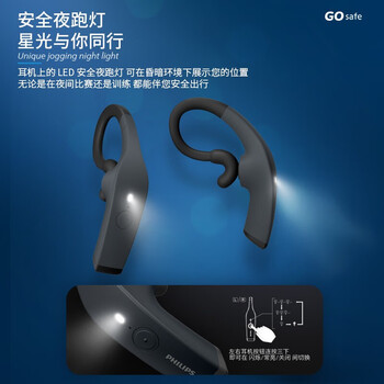 飞利浦(PHILIPS)骨传导蓝牙耳机运动真无线耳机跑步骑行耳机双麦克降噪通话耳挂式夜跑灯圣诞礼物TAA8606WT白色