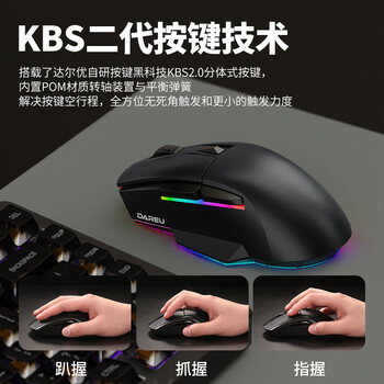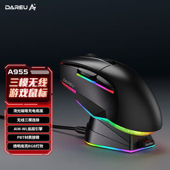 达尔优(dareu)A955黑色适合中大手无线蓝牙三模电竞游戏鼠标KBS2.0衡力PBT按键透明底壳
