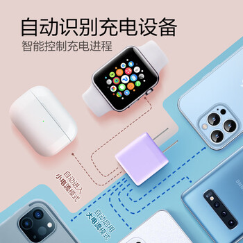 公牛PD20W充电器 苹果iPhone16快充头 充满自动断电 适用于iPhone15/14/13promax/12/11/x/8 迷雾紫