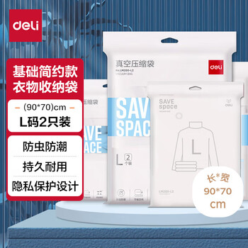 得力(deli)抽气款真空压缩袋 衣物被子旅行收纳袋 基础款 L码2个装 LM200
