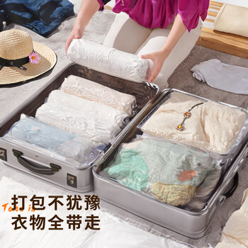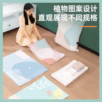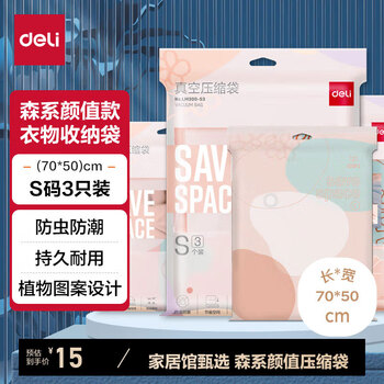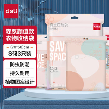 得力(deli)抽气款真空压缩袋 被子衣服旅行收纳袋植物图案 S码3个装 LM300