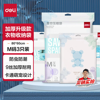 得力(deli)抽气款真空压缩袋 衣服被子旅行收纳 加厚升级 M码3个装 LM400