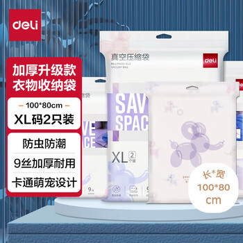 得力(deli)抽气款真空压缩袋 衣服被子旅行收纳袋 加厚升级 XL码2个装 LM400