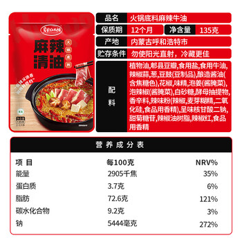 草原红太阳火锅底料 麻辣清油火锅底料135g 1~2人份 麻辣烫底料新老包装随机