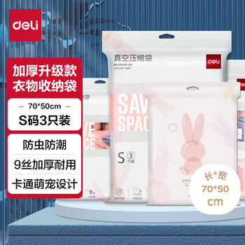得力(deli)抽气款真空压缩袋 衣服被子旅行收纳袋 加厚升级 S码3个装 LM400