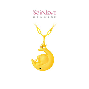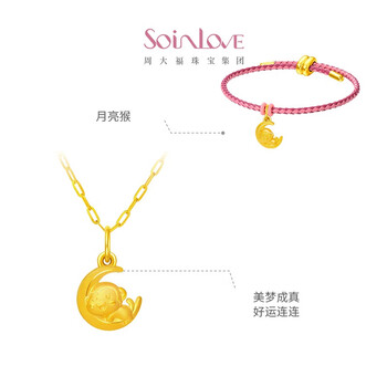 周大福SOINLOVE 萌宠月亮猴黄金吊坠足金女配双色手绳 VR1007生日礼物