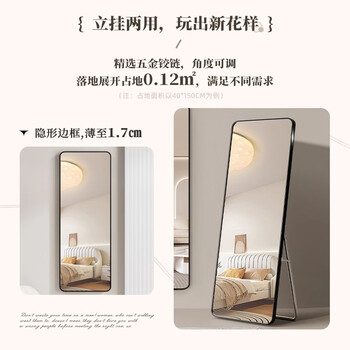 摩霄穿衣镜全身落地镜卧室玄关家用壁挂立体试衣镜ins风大镜子60宽黑
