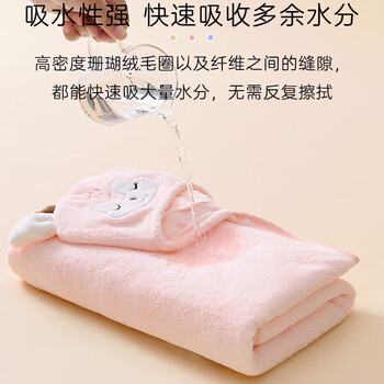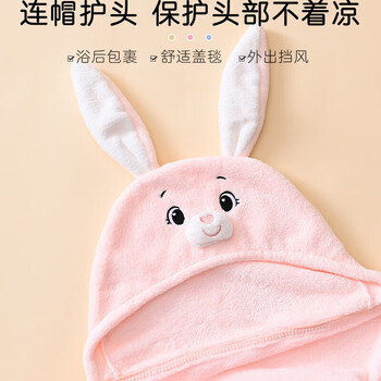 9i9宝宝浴巾加厚婴儿童斗篷浴袍珊瑚绒洗澡毛巾吸水A275粉小兔